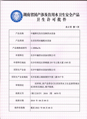 長沙中贏供水設備有限公司是一家集無負壓供水設備、變頻恒壓供水設備、二次供水設備、油水分離器設備、無塔給水、污水提升設備、不銹鋼水箱等給水系統于一體的供水企業。公司坐落于美麗的中國機械之都--長沙。在這片工業基礎設施完備、產業配套體系完善、技術人才充裕的沃土上,在公司全體員工的努力以及廣大客戶的大力支持下,公司經過多年的可持續發展,從節能供水設備行業中脫穎而出,優質的產品和服務得到了廣大客戶的一致好評. 詳細>>